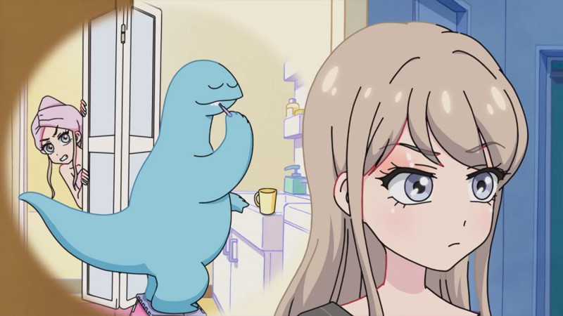 Со временем она начинает заботиться о новом жильце: кормит его, убирает за ним. Каэдэ замечает, что у них много общего: они оба любят смотреть телешоу и следить за модными тенденциями. Динозавр даже разбирается в моде и просит Каэдэ помочь ему подобрать образ.